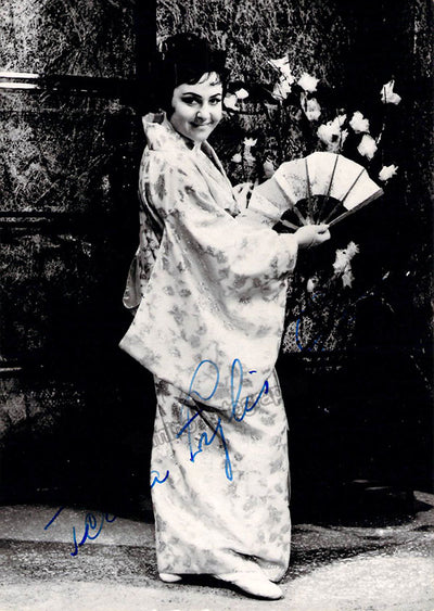 Signed photograph, shown in the title role of Puccini's Madama Butterfly. Size is 4 x 5.75 inches, in excellent condition.